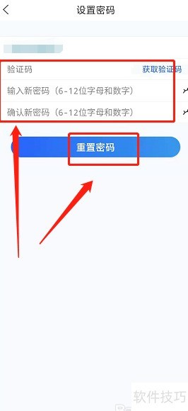 8、 进入密码设置页面,获取验证码并输入新密码后,点击重置密码按钮完成操作。