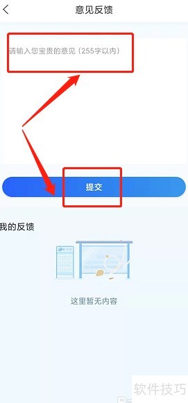 8、 进入反馈页面,填写意见后点击提交按钮。