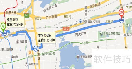 2、 在苏州火车站东侧公交中心乘26路至园区行政中心站,转乘158路即可。