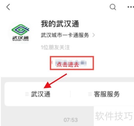 2、 进入公众号选择我的武汉通,操作所示