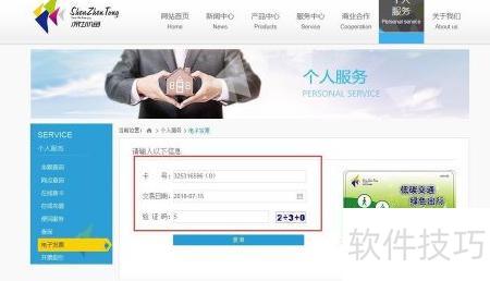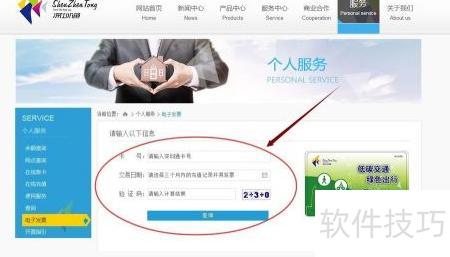 4、 打开电子发票页面,输入深圳通卡号、充值日期及验证码即可。深圳通卡号位于公交卡右下角的一串数字。