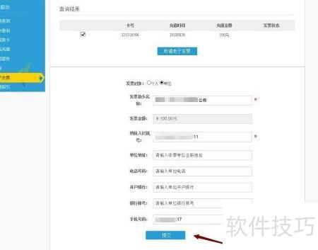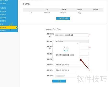 7、 选择单位作为发票对象,填写公司名称、税号及手机号,提交后等待约一分钟即可完成。