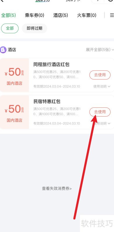 3、 进入我的券页面,点击去使用即可完成。