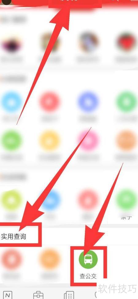 3、 进入发现页,点击实用查询中的查公交选项即可。