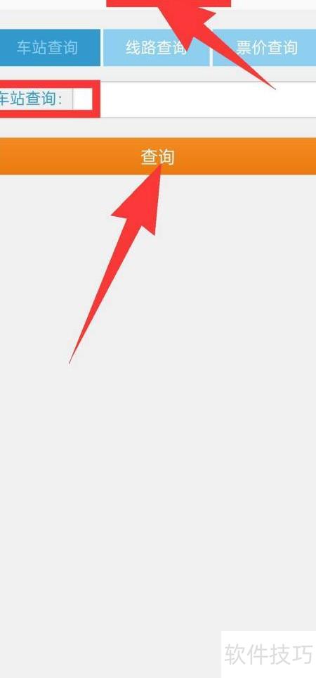 4、 进入公交查询页面,输入目的地车站名称,点击查询按钮即可获取相关信息。