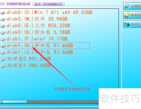 2、 程序启动后,双击目标磁盘即可恢复数据