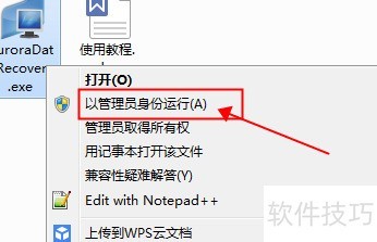 1、 下载解压程序后,双击目标分区,右键点击软件图标,选择以管理员身份运行即可恢复。