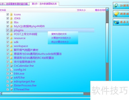 4、 勾选需恢复的文件,点击右上角保存按钮,通过文件保存功能将所选文件复制出来。