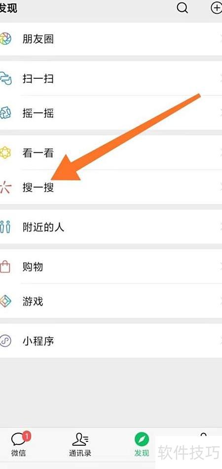 1、 打开微信,进入发现页面,选择搜一搜功能。