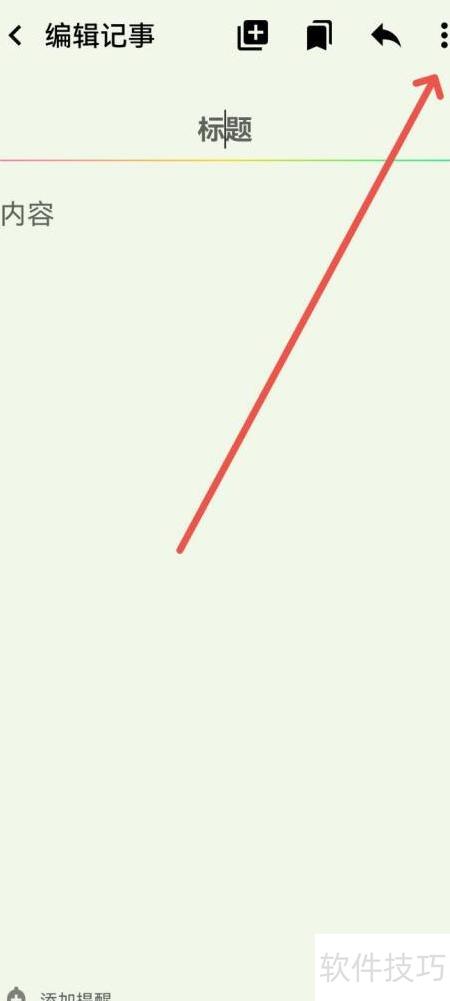 1、 打开小软笔记,进入编辑页面,点击右上角三点图标。