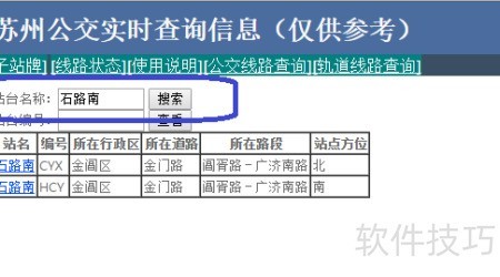 4、 在站台名称栏输入石路南,点击搜索即可查询北方位信息。