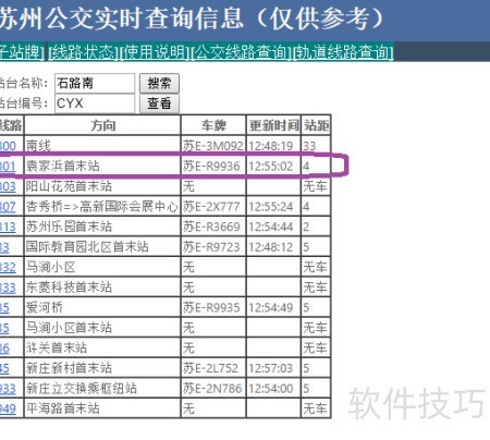 6、 查询结果包含公交线路、行驶方向、车牌号码、更新时间及站点间距等详细信息。