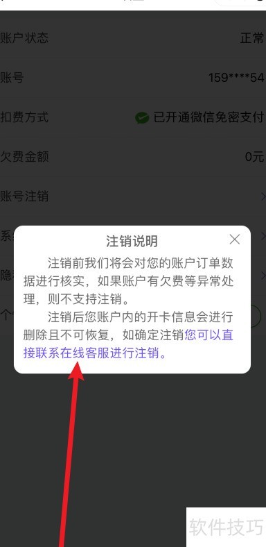 3、 进入注销页面后,选择联系在线客服即可完成注销操作。