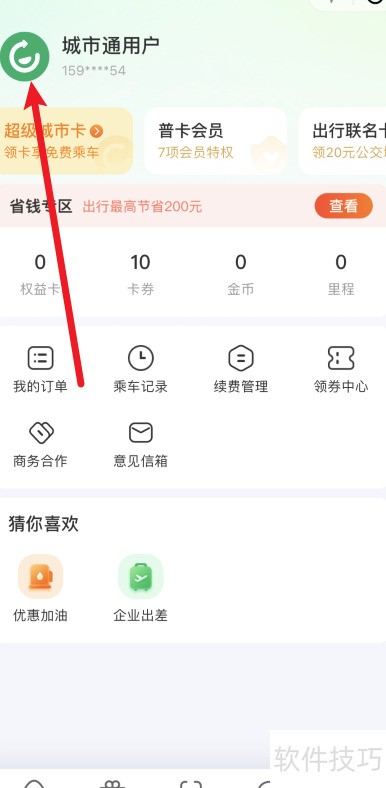 1、 打开城市通,点击左上角头像图标进入下一步。