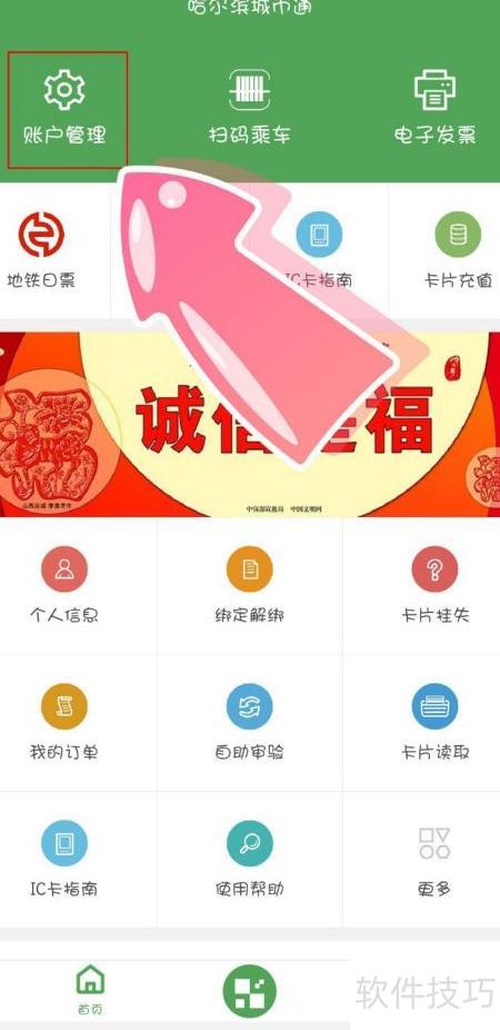 5、 打开哈尔滨城市通,进入账户管理页面。