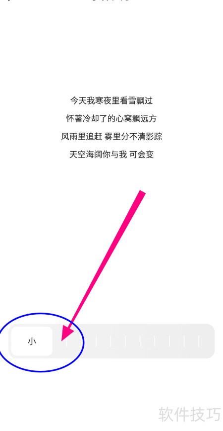 3、 在字体大小设置页面,选择小选项,将开关调至小位置,即可启用小号字体显示功能。