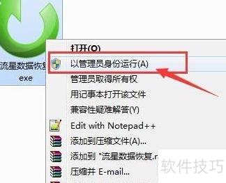 1、 百度搜索并下载该程序,双击需恢复的分区,解压后右键点击软件图标,选择以管理员身份运行即可启动操作。