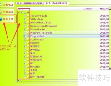 4、 选中需恢复的文件,点击右上角保存按钮,通过文件保存功能将所选内容复制出来。