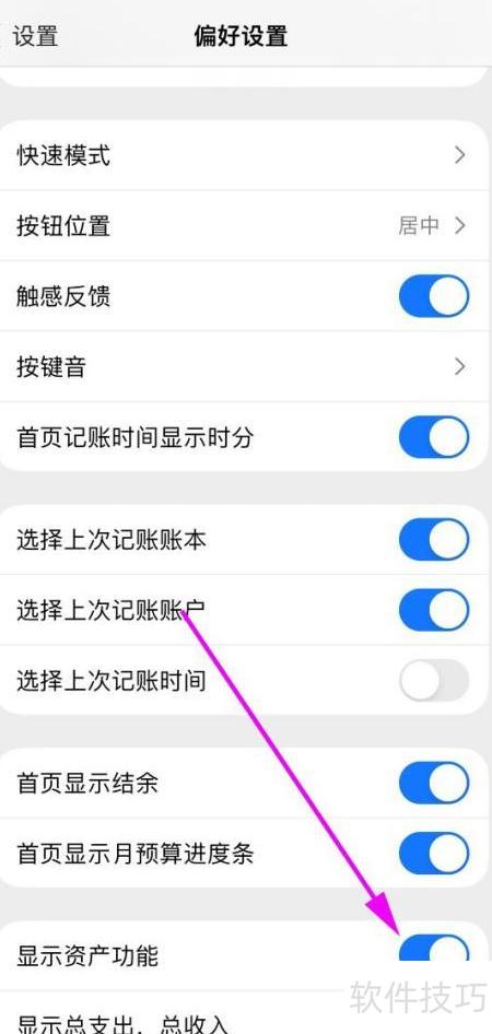3、 在偏好设置页面中,开启显示资产功能选项即可完成设置。