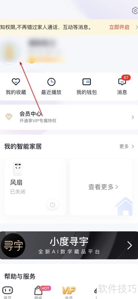 2、 先开启小度,再点进入个人中心。