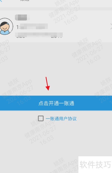 打开健康南京APP,找到一账通入口,按提示完成开通操作即可。