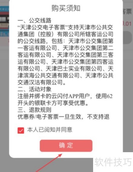 3、 进入优惠券页面会弹出购买须知,勾选同意后点击确认即可完成操作。