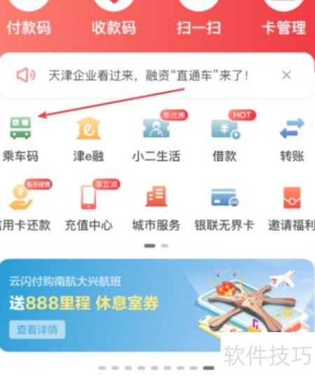 1、 打开云闪付,点击首页上的乘车码图标即可使用。