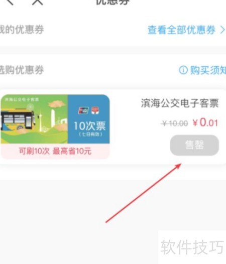 5、 滨海公交优惠券可按相同方式领取,成功后仅需一分钱即可享受五折乘车优惠。