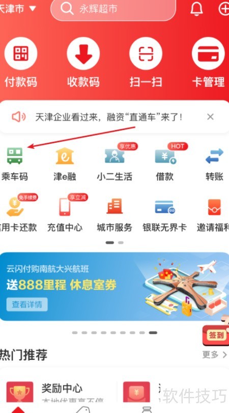 天津公交支持云闪付乘车码,乘客可扫码便捷出行。