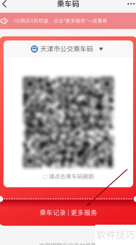 2、 进入天津公交乘车码页面,点击图示的更多服务选项。