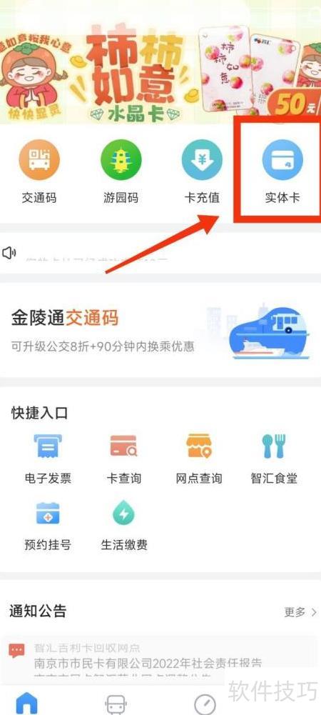 3、 打开南京市民卡应用,选择实体卡功能即可。
