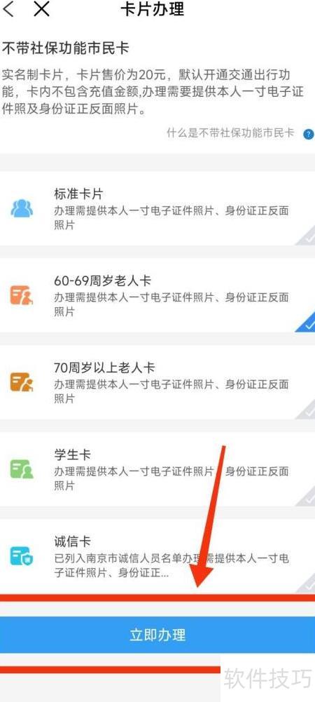 2、 抵达服务网点后,在工作人员协助下填写南京市不带社会保障功能市民卡申请表,签字确认并采集照片,缴纳每张20元的功能服务费,通常自申请日起10个工作日内可领取卡片。