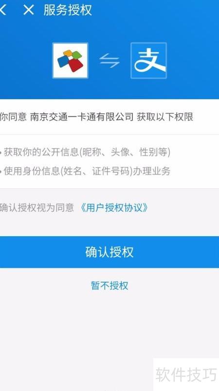 3、 授权支付宝与金陵乘车卡,确认完成认证。