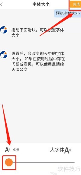 8、 调整字体大小时,滑动滑块至合适尺寸,最后点击完成确认设置。