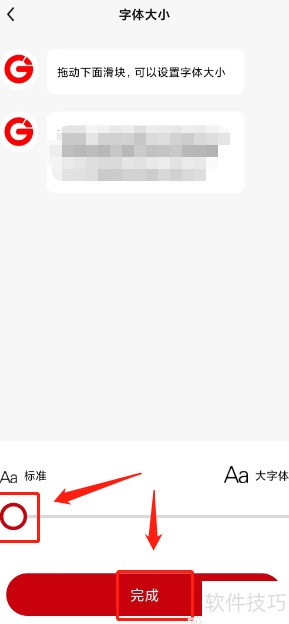 2、 进入字体设置,拖动滑块调整大小,点击完成,所示。