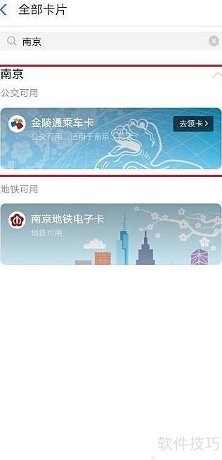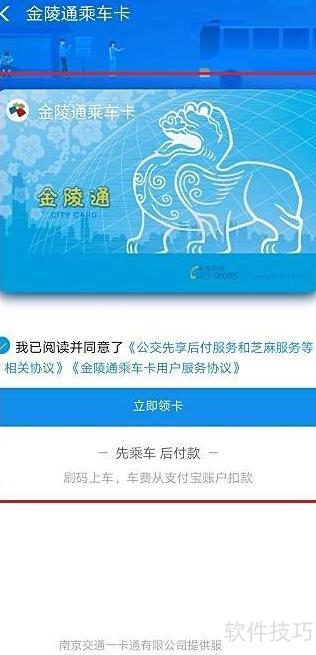 2、 进入乘车码后,系统将自动定位至南京,领取金陵通电子公交卡,方便乘坐当地公共交通。