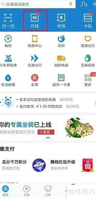 1、 支付宝现已支持南京公交扫码乘车。打开手机支付宝,进入首页点击付钱,再选择下方的乘车码即可使用。