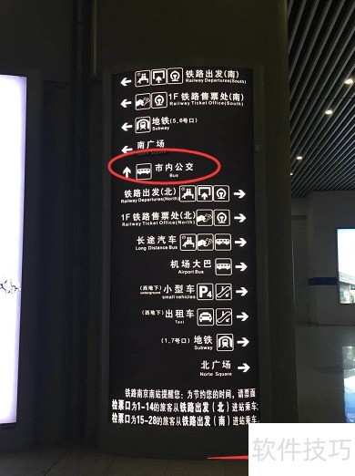 1、 下车后沿1-6出站口方向走,抬头看指示牌找市内公交。