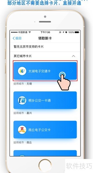 3、 选择所在城市的卡片,若无则无需操作,直接跳过即可。