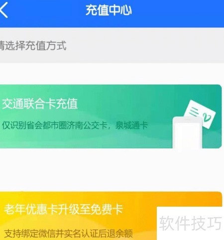 3、 在充值退费页面顶部,选择交通联合卡充值选项。