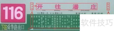 2、 通过查看公交站牌,可了解当前站点途经的公交线路。图中红框内(红色箭头指示)即为相关信息展示区域。