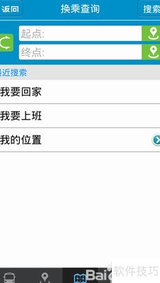 5、 换乘时只需选定公交模式,输入起止点,系统便会自动规划出最便捷的换乘路线。