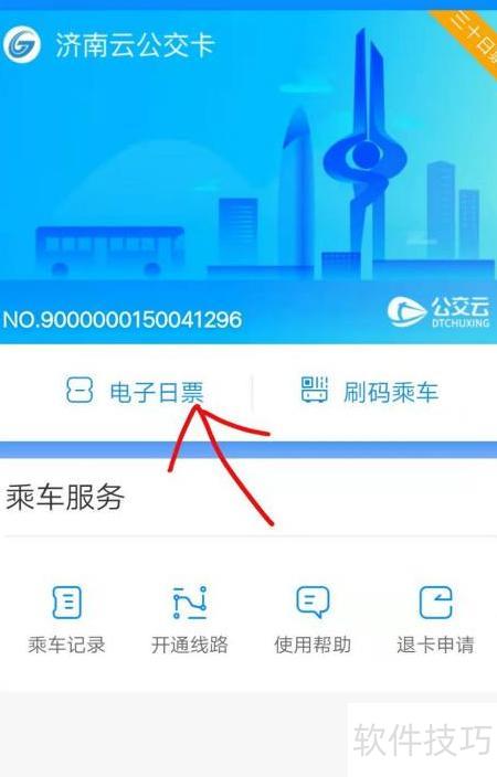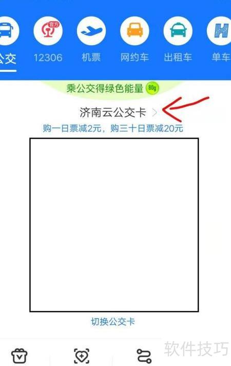 2、 点击济南云公交卡右侧三角符号