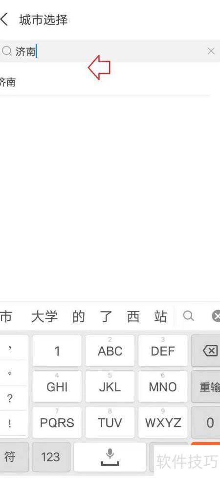 3、 选择城市,切换至济南即可。