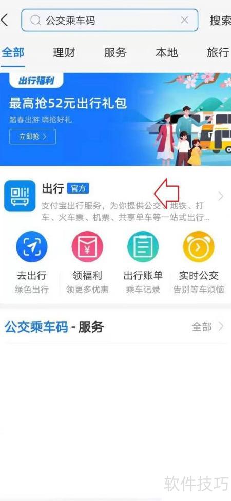 2、 点击搜索公交乘车码,进入公交服务页面。