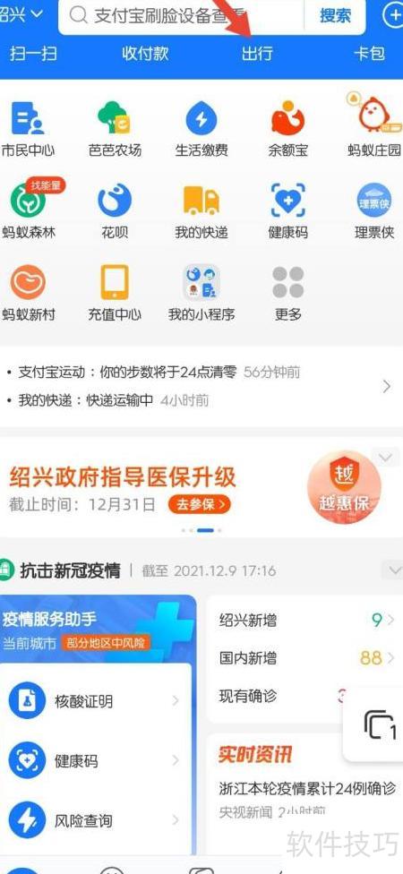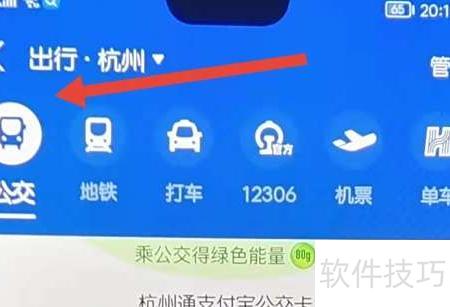 打开手机进入支付宝,点击首页的出行功能,选择左上角城市为杭州,即可生成杭州公交乘车码,方便快捷完成乘车准备。