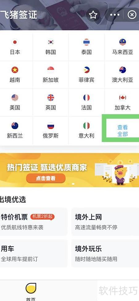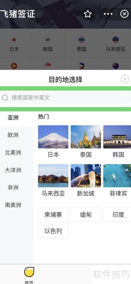 5、 在搜索框输入目的地国家,即可办理相应签证。