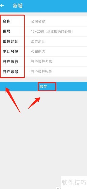 4、 填写名称、税号、地址及电话,点击保存即可完成新增操作。