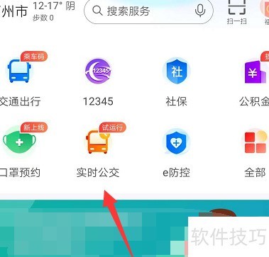 2、 选择实时公交,所示
