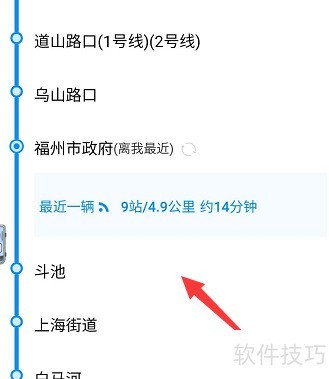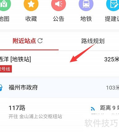 3、 查看附近站点,具体位置所示。